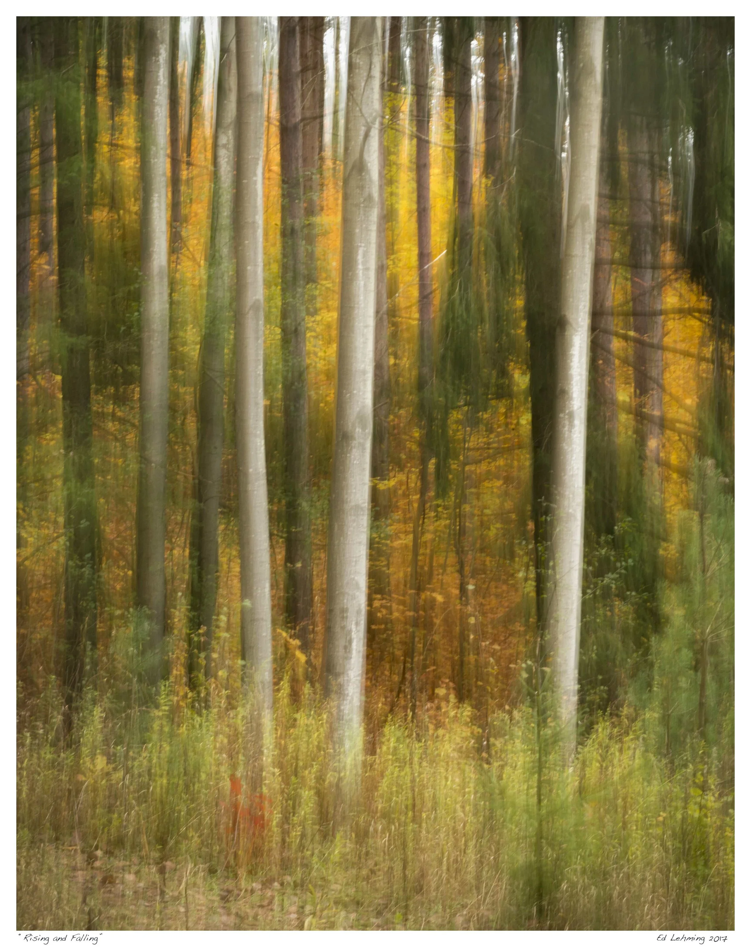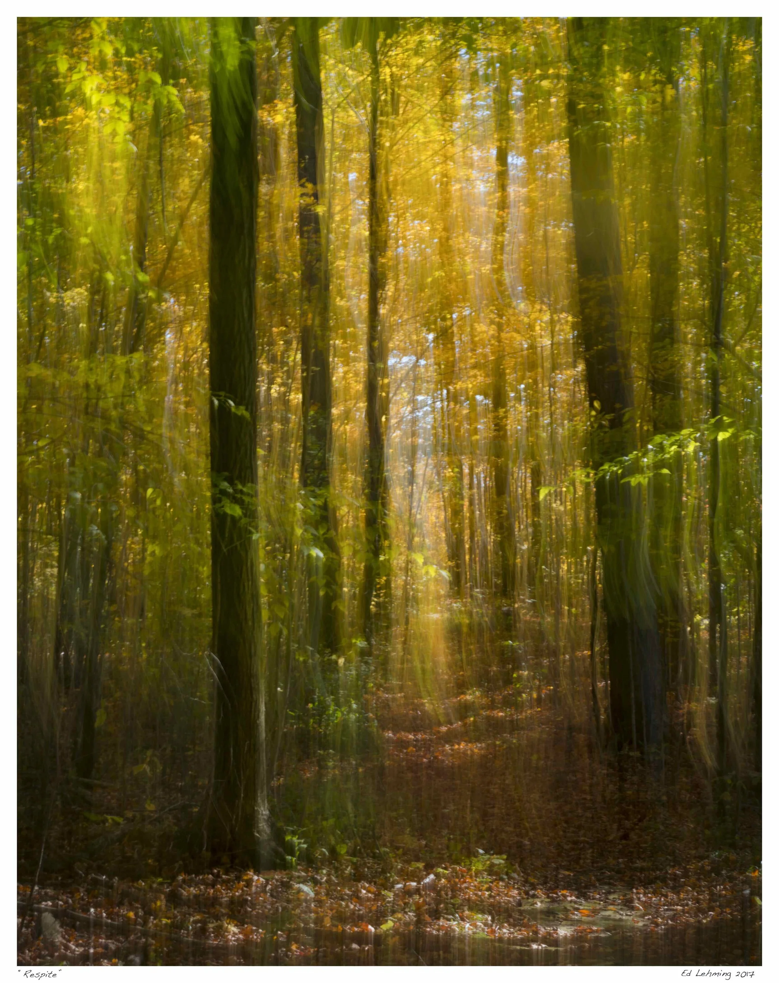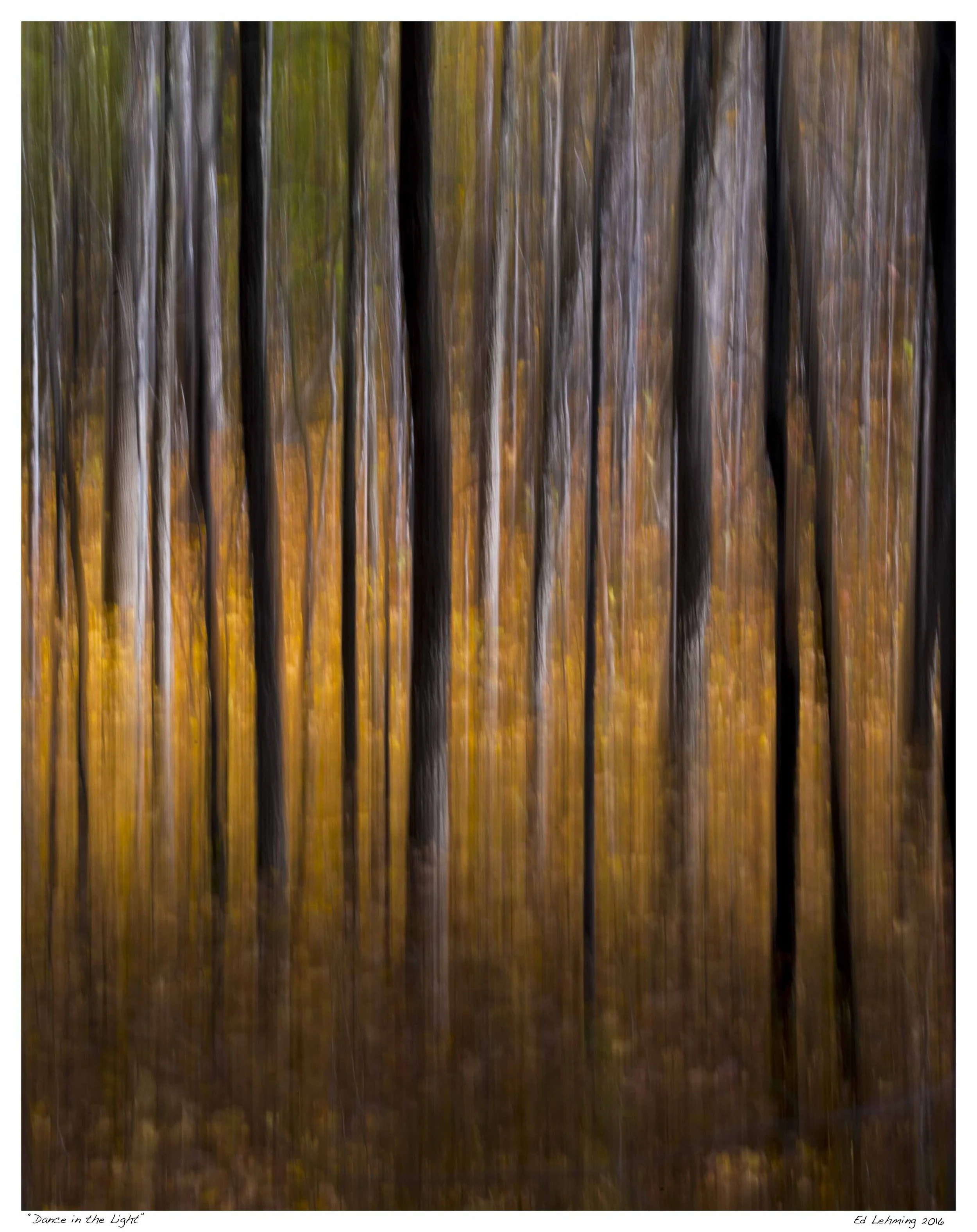 Photography is more than just capturing images; it's about conveying emotion and energy. Forests, with their intricate textures and subtle colors, can be challenging to photograph. Traditional techniques often result in flat, lifeless images. Through experimentation, I discovered that intentional camera movement (ICM) and using the correct medium, in this case, brushed aluminum, brings life to forest photography. By moving the camera during exposure, Iβm able to create dynamic images that reflect the forest's vitality. Techniques like slow shutter speeds, controlled movement, and intentional composition help capture the energy of the woods. This approach transforms static scenes into vibrant, expressive photographs, inviting viewers to experience the forest's spirit in a new way. Photography is a journey of discovery, and this process has enabled me to infuse my forest images with life and energy. - Ed Lehming
